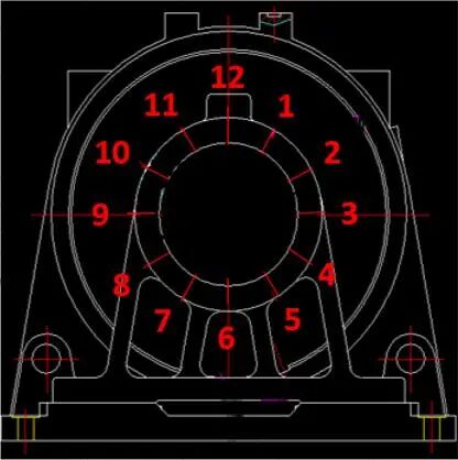 • ক) সমস্যা: ডাবল-সমর্থিত মেশিন বেস অ্যাসেম্বলির ভারবহন আসনের সূক্ষ্ম-মেশিনযুক্ত অভ্যন্তরীণ ছিদ্রের সহ-অক্ষীয়তা অস্থির। সমাবেশের পরে, এটি পুরো মেশিন বেসের ভারবহন চেম্বারের রানআউট সহনশীলতাকে অতিক্রম করবে, যা অঙ্কন প্রয়োজনীয়তা পূরণ করে না।