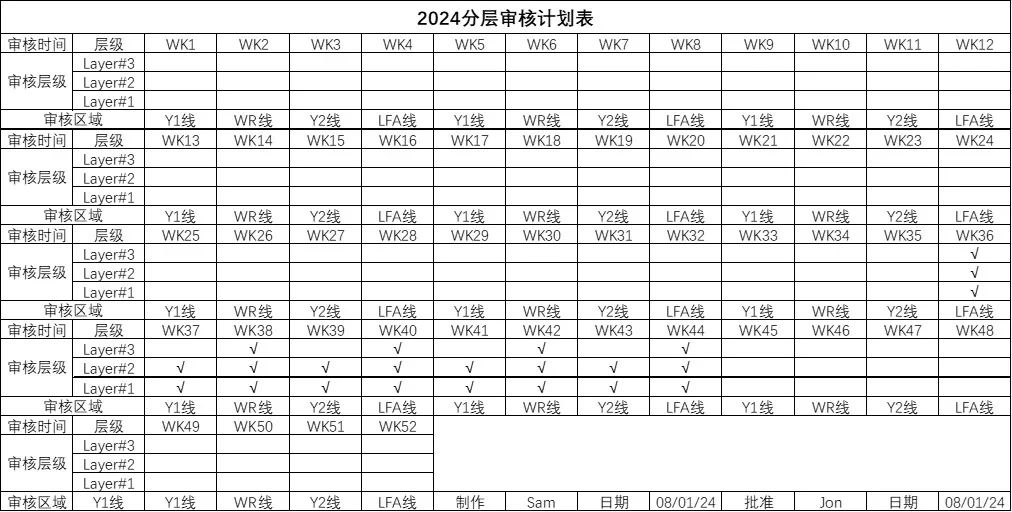 প্রথমত, উন্নতি উদ্যোগের দীর্ঘ সময়কাল এবং উন্নতির কার্যকারিতা আরও ভালভাবে প্রদর্শনের আকাঙ্ক্ষাকে বিবেচনা করে, ক্রিয়াকলাপগুলি পরিকল্পনা করা এবং একটি স্তরযুক্ত প্রক্রিয়া নিরীক্ষণের সময়সূচী তৈরি করা প্রয়োজন। ইঞ্জিনিয়ারদের জন্য এলপিএ সামঞ্জস্য করা তুলনামূলকভাবে সহজ হলেও, সিনিয়র নেতাদের এলপিএতে অংশ নেওয়ার জন্য অস্থায়ীভাবে সময় নির্ধারণ করা কঠিন হতে পারে। অতএব, একটি নিরীক্ষণ পরিকল্পনা অপরিহার্য এবং অবশ্যই আগাম জারি করা উচিত।