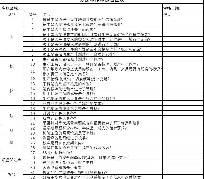 উদ্যোগের প্রাথমিক পর্যায়ে, ইনস্টলেশন কর্মশালার সকালের সভাগুলিতে "তিনটি কমপ্লায়েন্স এবং দুটি অনুগত" প্রচার করা হয়েছিল, কর্মীদের গুণগত উন্নতির প্রচেষ্টায় সক্রিয়ভাবে অংশ নিতে এবং অপারেশন প্রক্রিয়াতে সম্ভাব্য মানের ঝুঁকির প্রতিবেদন করার জন্য কথা বলার জন্য উত্সাহিত করে। দক্ষতা উন্নত করতে, প্রাসঙ্গিক মাত্রাগুলি কভার করে চেকলিস্টগুলি বিকাশ করা হয়েছিল। অপারেটররা তাদের অবস্থান গ্রহণের পরে, কিছু পরিবেশের সাথে অপরিচিত হতে পারে এবং প্রায়শই তারা পরিচিতির কারণে অল্প সময়ের মধ্যে উত্পাদন সাইটে সম্ভাব্য সমস্যাগুলি সনাক্ত করতে ব্যর্থ হতে পারে। সুতরাং, চেকলিস্টগুলি থেকে অনুরোধগুলি কাজটি সম্পাদন করতে হবে।