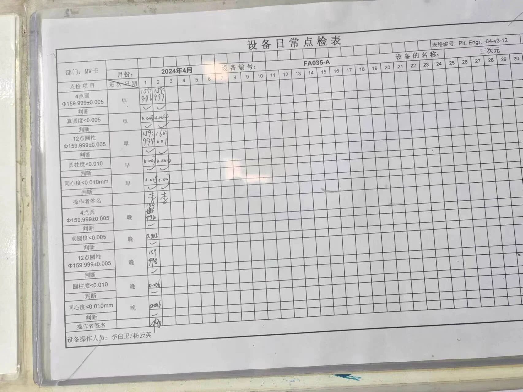 • সরঞ্জাম স্থিতি কার্যকর পর্যবেক্ষণের জন্য দৈনিক সরঞ্জাম চেক শীট