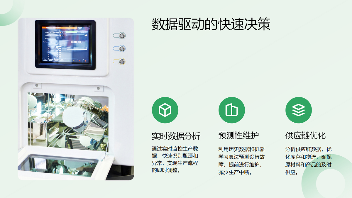 • ডেটা-চালিত দ্রুত সিদ্ধান্ত গ্রহণ: রিয়েল-টাইম ডেটা বিশ্লেষণ, ভবিষ্যদ্বাণীমূলক রক্ষণাবেক্ষণ এবং সাপ্লাই চেইন অপ্টিমাইজেশনের মাধ্যমে দ্রুত প্রতিক্রিয়ার সিদ্ধান্ত নিন।