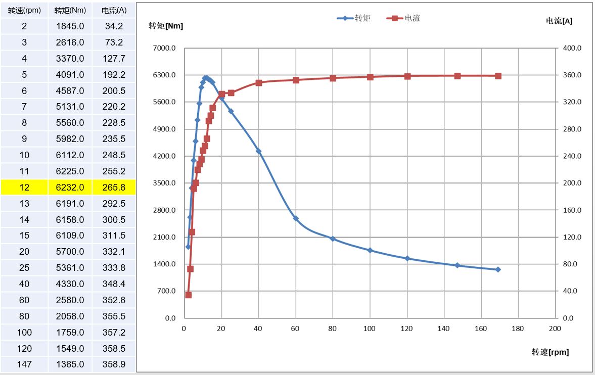 সিমুলেশন ফলাফলের যথার্থতা যাচাই করতে, বিদ্যমান পরীক্ষার ডেটা সহ একটি ট্র্যাকশন মেশিন নির্বাচন করা হয়েছিল, 159 আরপিএমের রেটযুক্ত গতি সহ। পরিমাপ করা স্থির-রাষ্ট্রীয় তারা-সিলিং টর্ক এবং বিভিন্ন গতিতে বাতাসের বর্তমান নিম্নরূপ। তারকা-সিলিং টর্কটি সর্বোচ্চ 12 আরপিএম এ পৌঁছেছে।