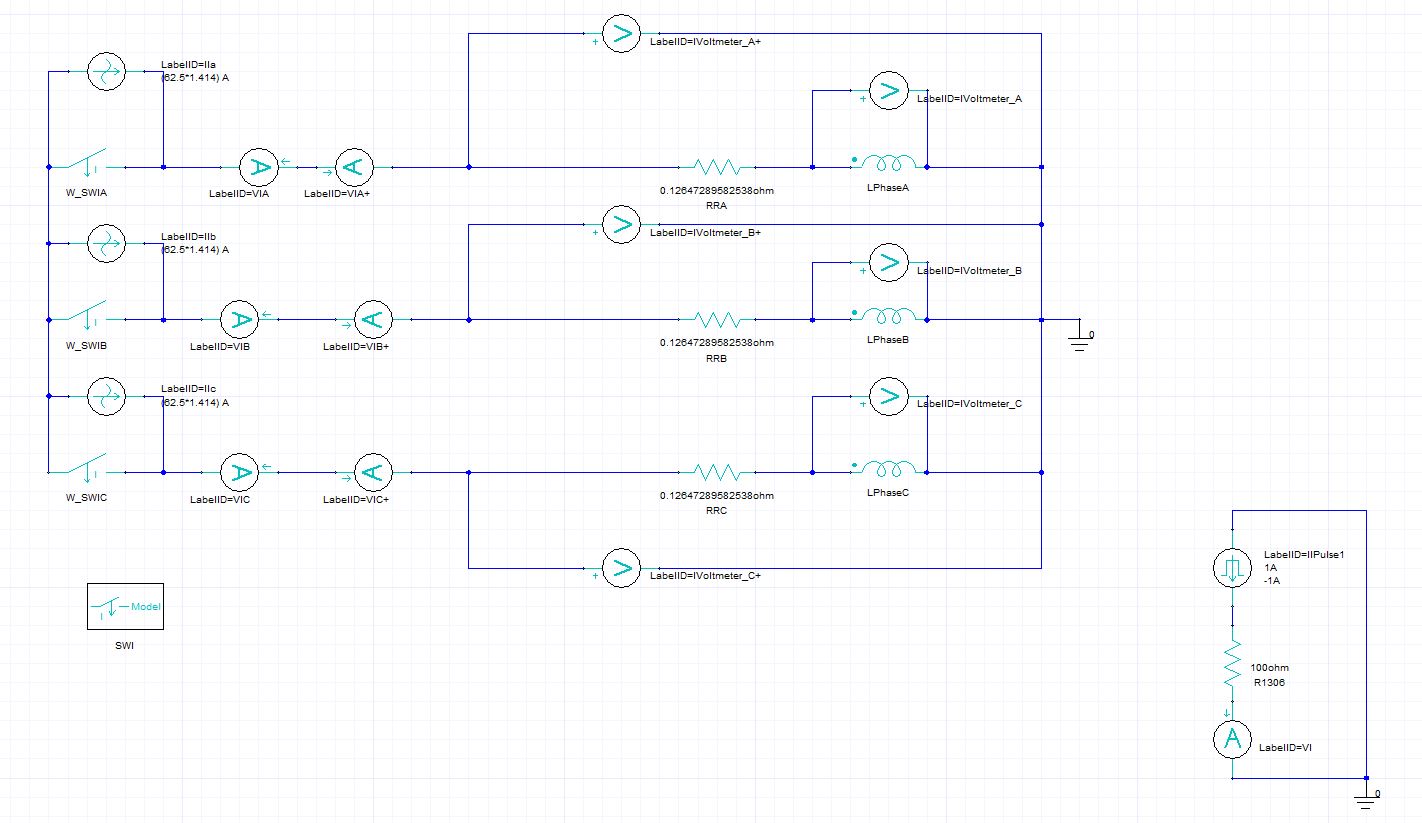 ট্র্যাকশন মেশিনের সসীম উপাদান মডেল প্রতিষ্ঠা বৈদ্যুতিন চৌম্বক বিশ্লেষণের জন্য মৌলিক এবং এখানে বিশদভাবে বর্ণনা করা হবে না। এটি জোর দেওয়া হয় যে মোটরটির উপাদান সেটিংস অবশ্যই প্রকৃত ব্যবহারের সাথে সামঞ্জস্য করতে হবে; স্থায়ী চৌম্বকগুলির পরবর্তী ডেমাগনেটাইজেশন বিশ্লেষণ বিবেচনা করে, স্থায়ী চৌম্বকগুলির জন্য ননলাইনার বি-এইচ বক্ররেখা ব্যবহার করা উচিত। এই কাগজটি ম্যাক্সওয়েলে ট্র্যাকশন মেশিনের স্টার-সিলিং এবং ডেমাগনেটাইজেশন সিমুলেশন কীভাবে প্রয়োগ করা যায় তার উপর দৃষ্টি নিবদ্ধ করে। সফ্টওয়্যারটিতে তারা-সিলিংটি একটি বাহ্যিক সার্কিটের মাধ্যমে উপলব্ধি করা হয়েছে, নীচের চিত্রটিতে নির্দিষ্ট সার্কিট কনফিগারেশন সহ। ট্র্যাকশন মেশিনের থ্রি-ফেজ স্টেটর উইন্ডিংগুলি সার্কিটের এলফেসিয়া/বি/সি হিসাবে চিহ্নিত করা হয়। তিন-পর্বের উইন্ডিংগুলির হঠাৎ শর্ট সার্কিট স্টার-সিলিং অনুকরণ করতে, একটি সমান্তরাল মডিউল (একটি বর্তমান উত্স এবং একটি বর্তমান-নিয়ন্ত্রিত সুইচ নিয়ে গঠিত) প্রতিটি ফেজ উইন্ডিং সার্কিটের সাথে সিরিজে সংযুক্ত থাকে। প্রাথমিকভাবে, বর্তমান-নিয়ন্ত্রিত সুইচটি উন্মুক্ত এবং তিন-পর্যায়ের বর্তমান উত্স উইন্ডিংগুলিতে শক্তি সরবরাহ করে। একটি নির্দিষ্ট সময়ে, বর্তমান-নিয়ন্ত্রিত সুইচটি বন্ধ হয়ে যায়, তিন-পর্যায়ের বর্তমান উত্সকে শর্ট-সার্কিট করে এবং তিন-পর্যায়ের উইন্ডিংগুলি সংক্ষিপ্ত করে শর্ট সার্কিট তারকা-সিলিং অবস্থায় প্রবেশ করে।