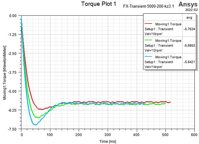 ট্র্যাকশন মেশিনের পরিমাপ করা সর্বাধিক তারকা-সিলিং টর্কটি 12 আরপিএম গতির সাথে মিলে যায়। সিমুলেশন চলাকালীন, গতি 10 আরপিএম, 12 আরপিএম এবং 14 আরপিএম হিসাবে পরিমাপ করা গতির সাথে সারিবদ্ধ হওয়ার জন্য প্যারামিটারাইজ করা হয়েছিল। সিমুলেশন স্টপ সময় সম্পর্কে, বিবেচনা করে যে বাতাসের স্রোতগুলি নিম্ন গতিতে দ্রুত স্থিতিশীল হয়, কেবল 2-3 বৈদ্যুতিক চক্র সেট করা হয়েছিল। ফলাফলের সময়-ডোমেন বক্ররেখা থেকে, এটি বিচার করা যেতে পারে যে গণনা করা তারা-সিলিং টর্ক এবং উইন্ডিং কারেন্ট স্থিতিশীল হয়েছে। সিমুলেশনটি দেখিয়েছে যে 12 আরপিএম-এ স্থির-রাষ্ট্রীয় তারা-সিলিং টর্কটি বৃহত্তম ছিল, 5885.3 এনএম, যা পরিমাপকৃত মানের চেয়ে 5.6% কম ছিল। পরিমাপ করা বাতাসের বর্তমানটি ছিল 265.8 এ, এবং সিমুলেটেড কারেন্টটি 251.8 এ ছিল, সিমুলেশন মানটিও পরিমাপকৃত মানের চেয়ে 5.6% কম, ডিজাইনের নির্ভুলতার প্রয়োজনীয়তা পূরণ করে।